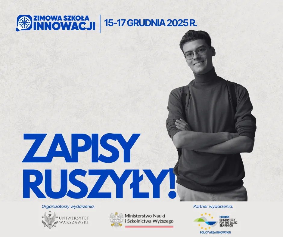 Więcej informacji o Zimowej Szkole Innowacji znajduje się pod adresem: https://szkolazimowa.szkolydoktorskie.uw.edu.pl/ Formularz rejestracyjny: https://forms.gle/JDas7VsgDxZV8CBY7